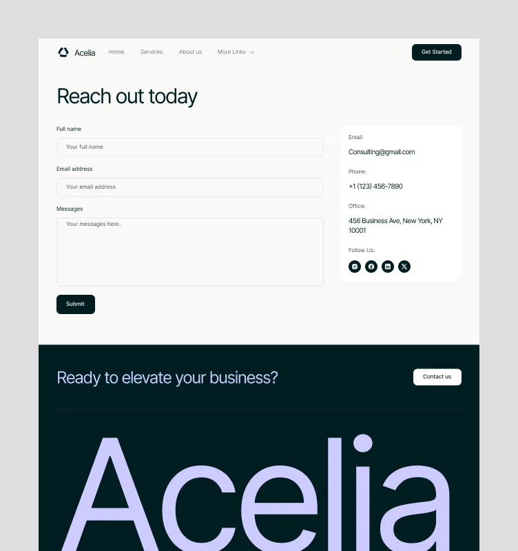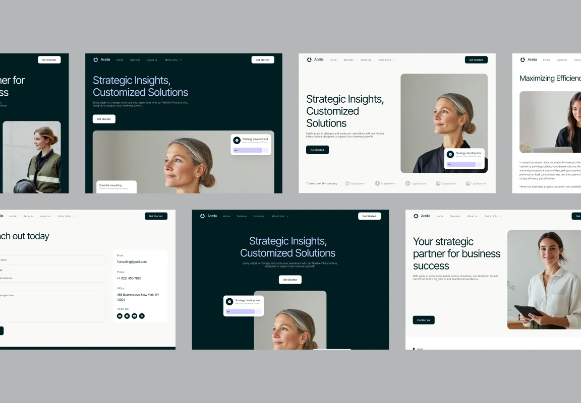 Acelia Webflow Template includes over 12 pages in total, with more than 25 sections.
